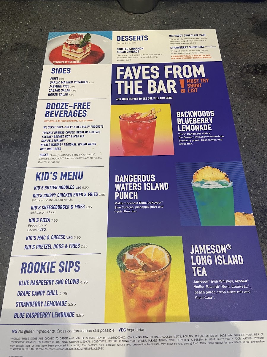 If you're looking for a fun and flavorful dining experience, Dave & Buster's Toledo Menu offers just that. Located at 5001 Monroe St, Toledo, OH, this spot brings a lively atmosphere with a menu that’s as exciting as its arcade games. Whether you’re craving a hearty burger, something light like a fresh salad, or a savory appetizer to share, there’s something to satisfy every taste. Their diverse selection of entrees and drinks pairs perfectly with a night of games and entertainment. The menu at Dave & Buster's is designed to please all ages, offering both indulgent options and lighter choices to keep you fueled for hours of fun. The best part? It’s all served in a casual, upbeat setting, perfect for gathering with friends or family.
